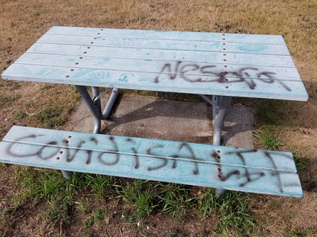 Vandalism was found along the Cycloparc PPJ in the Shawville sector. The vandals left messages such as “COVID 19 = LIES” on a picnic table, on a sign and on the bike path itself. Kim Lessage of the MRC Pontiac summarizes the actions of the vandals. CHIP101.9 · Clip – Kim Lessage – Vandalism on […]
